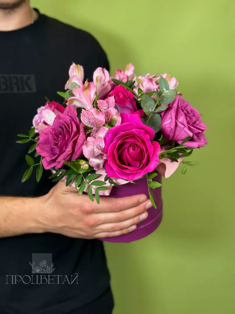 Композиция в шляпной коробке «Малиновый десерт»