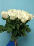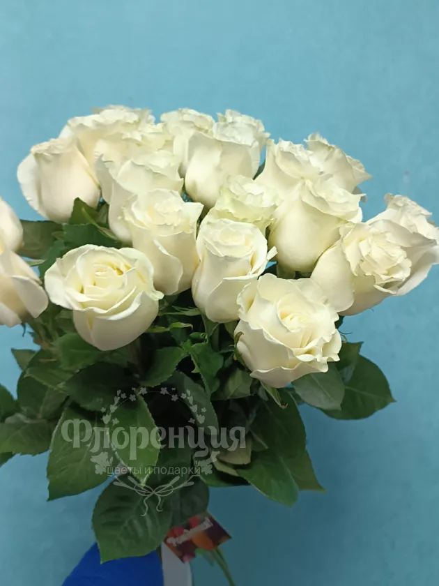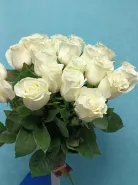Букет из нежных белых роз олицетворение элегантности и чистоты. Соцветия, окруженные свежими зелеными листьями, создают объемную композицию. Букет станет прекрасным подарком для самых дорогих и близких людей.